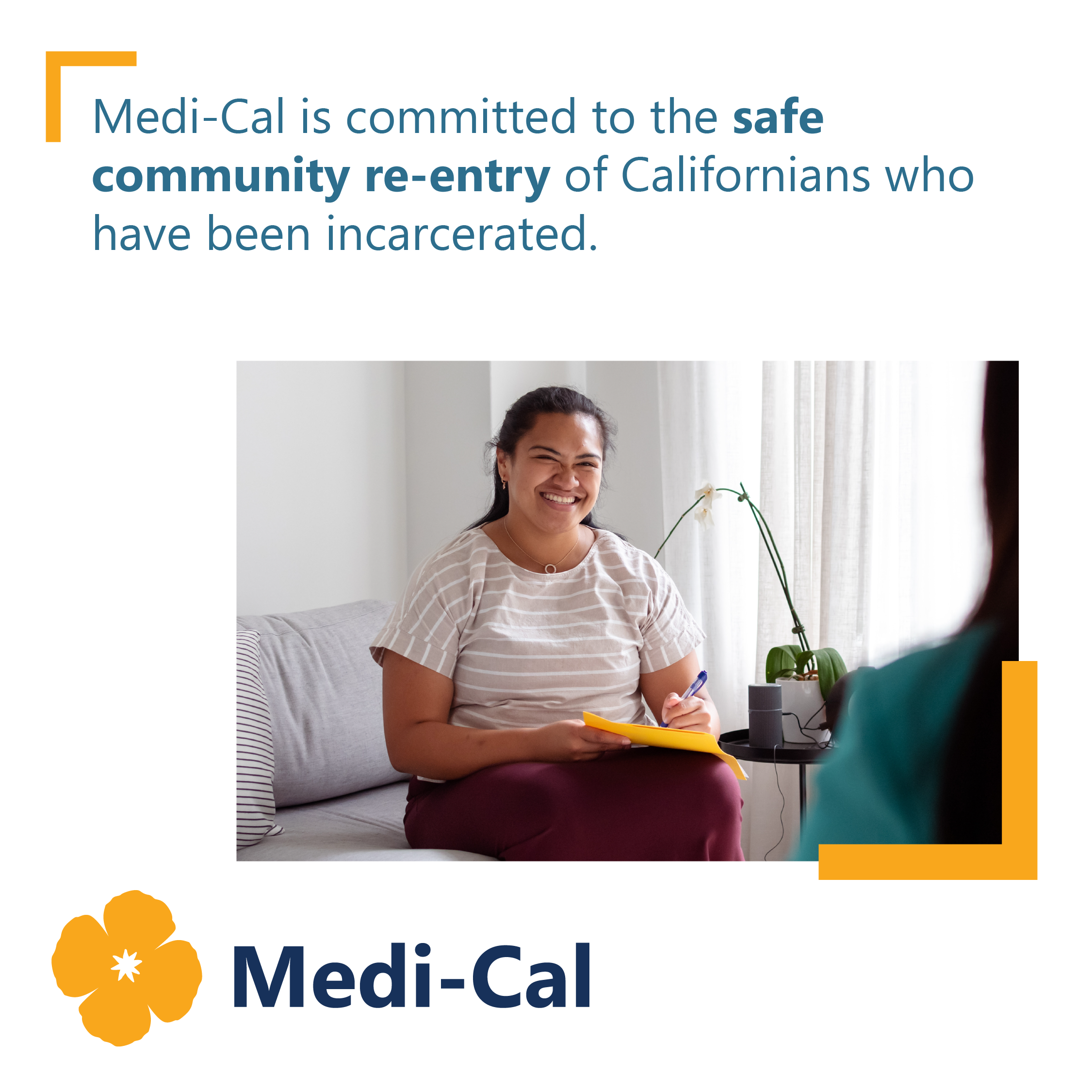 - 这项涉及司法系统的举措通过 Medi-Cal 预释放登记确保了保险的连续性,并提供支持成功重返社会的关键服务。